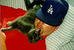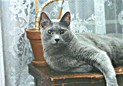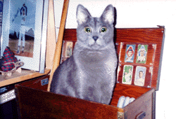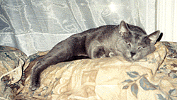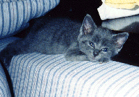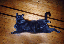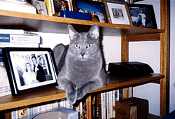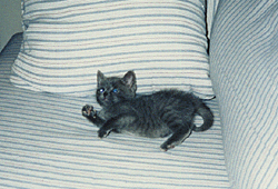 Abandoned on the darkened doorstep of a Newark church. Brought home in a cardboard box filled with his siblings. Garvey Kitty entered my life. Much too small to be taken from his mother, Garvey made up for his diminutive nature with an aggression, an anger, no an outright rage against the world. If it moved, looked like it might move or even threatened to exist - Garvey bit it. Nothing was safe: balls of paper, body parts, assorted writing implements. Favorite targets included: noses, the web between your thumb and palm, toes and most bitable of all...ankles. Over the years, Garvey has mellowed...if he hadn't, I wouldn't have the fingers to type this. These days, the Gray Boy spends most his time perfecting a various array of comfortable poses. All suitable for a Sunday afternoon lounging around at home, and yet still battle-ready. Sporting a pair of non-retractable fangs, Garvey struts his stuff along the streets and avenues of Hoboken, New Jersey. |
